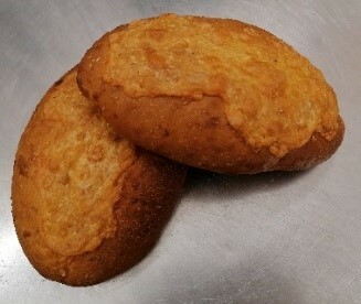 3 мин 1 скорость + 7 мин на 2 скорости 30 мин 350 гр 20 мин Батон 40 мин при 30 °С и W 75 % Посадочная Т 230°С, основная Т 200-210°С в течении 25 мин, пар. Перед выпечкой – 1 продольный надрез. За 3 мин до окончания выпечки посыпать сыром.