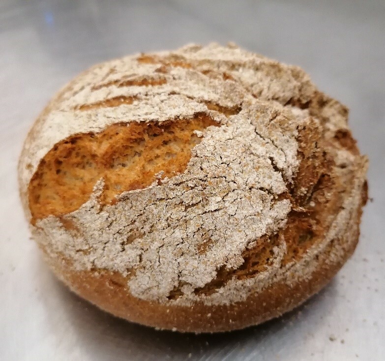 3 мин 1 скорость + 5 мин на 2 скорости 20 мин 500 гр 5 мин Округляем и формуем швом в в смеси мука ржаная обдирная :отруби ржаные (1:1). Выкладываем на лист подлылённый мукой. 40 мин при Т 35 °С и W 75% + 10 мин в условиях цеха. Посадочная Т 230°С, основная Т 200-210°С в течении 40 мин, пар.