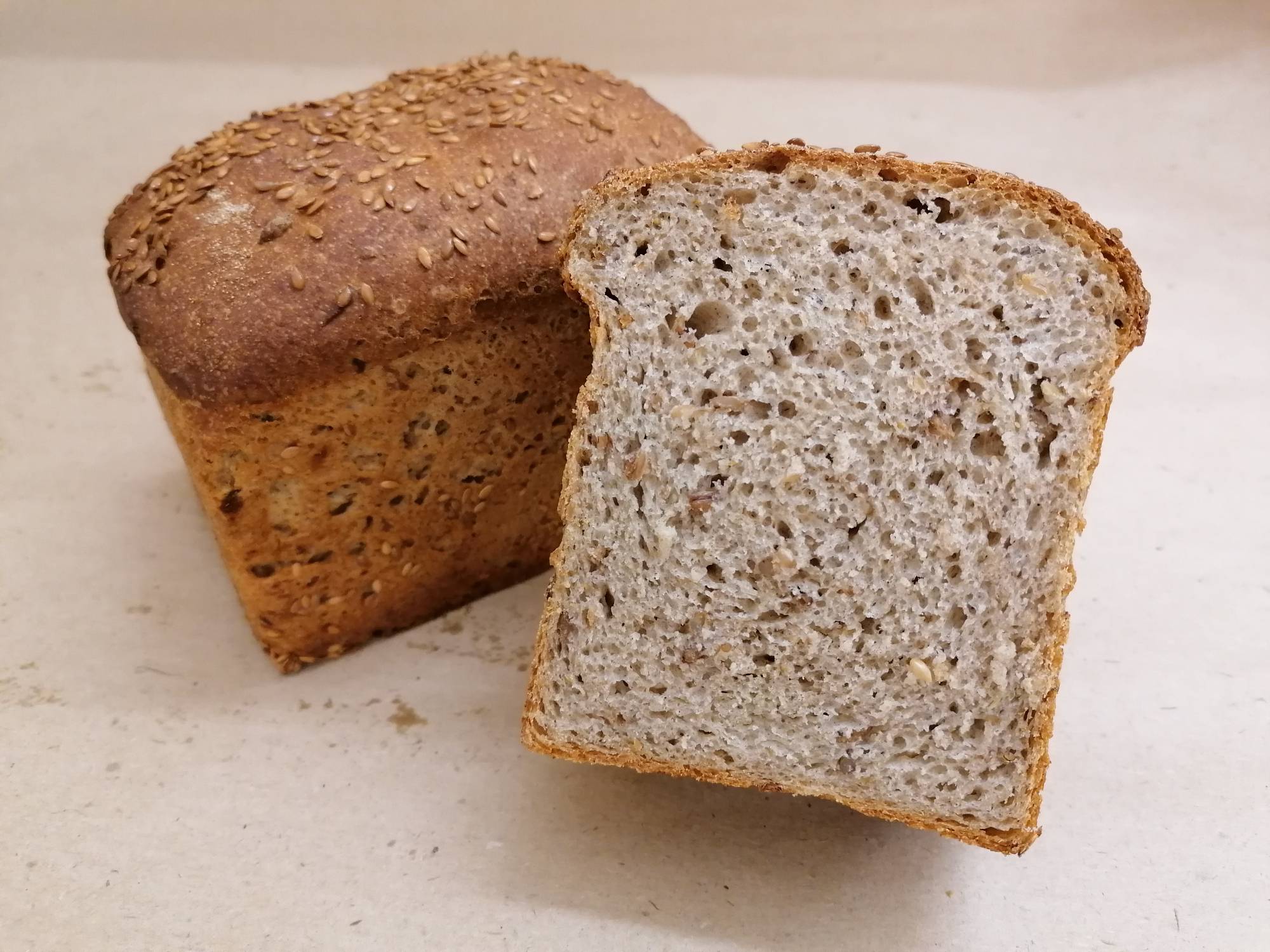 3мин на 1й скорости+ 6 мин на 2й. 20 минут по 500 грамм 5 минут под форму, посыпать льном 50 минут При 35 С и W 75 % при посадочной температуре 240°С и основной 210°С в течении 40 мин.