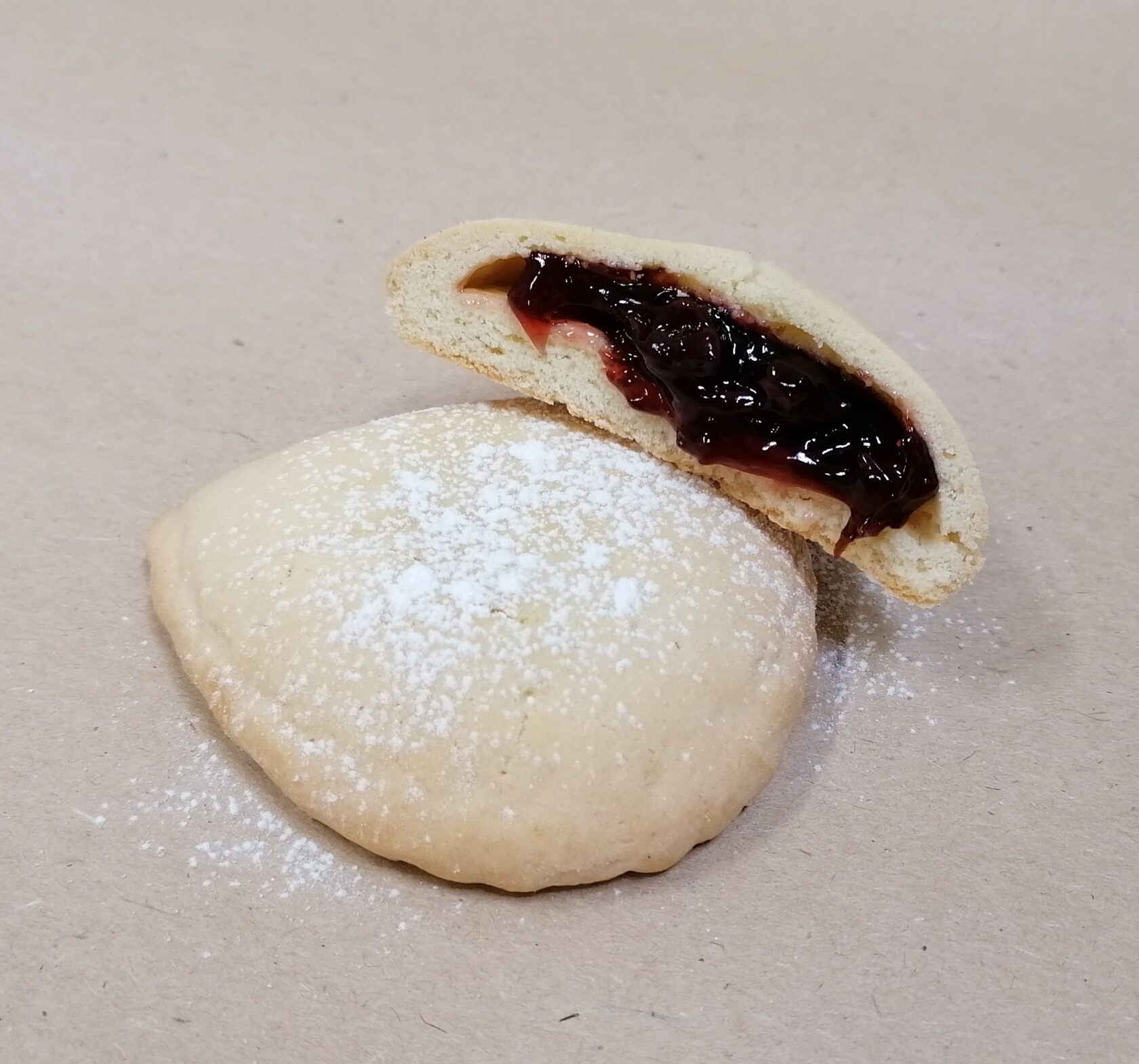 взбить сахар, яйцо и маргарин до однородной массы. Добавить воду, взбить, затем перемешать с оставшимися ингредиентами раскатать тесто до толщены 0.5 см, вырезать овал, выложить начинку, сложить тесто пополам Посадочная Т 200°С, основная Т 160°С в течение 12 мин