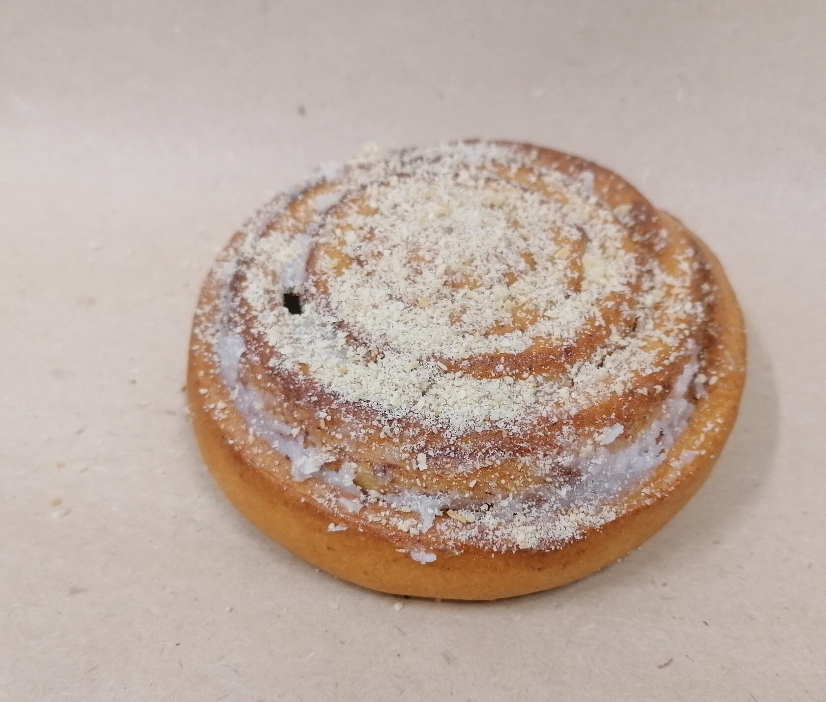 3 мин 1 скорость + 6мин на 2 скорости 30 минут раскатать тестовую заготовку до 0.5 см, распределить равномерно шоколадную начинку, поверх кокосовую, свернуть рулет, нарезать на отдельные изделия 60 мин при Т 35 °С и W 75% Посадочная Т 200°С, основная Т 160°С в течение 20 мин, перед выпечкой изделия смазать яйцом и посыпать ореховой мукой